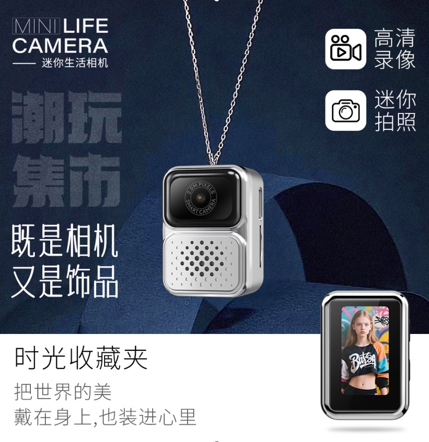 *480Pp high-definition video recording * 0.96-inch IPS color screen * Built-in 200mAH lithium battery with a recording duration of 1 hour * Multiple filters available for selection * Wear necklace pendants, freely switch between accessories and camera, memory card required (for custom LOGO and memory card purchase, please contact customer service)